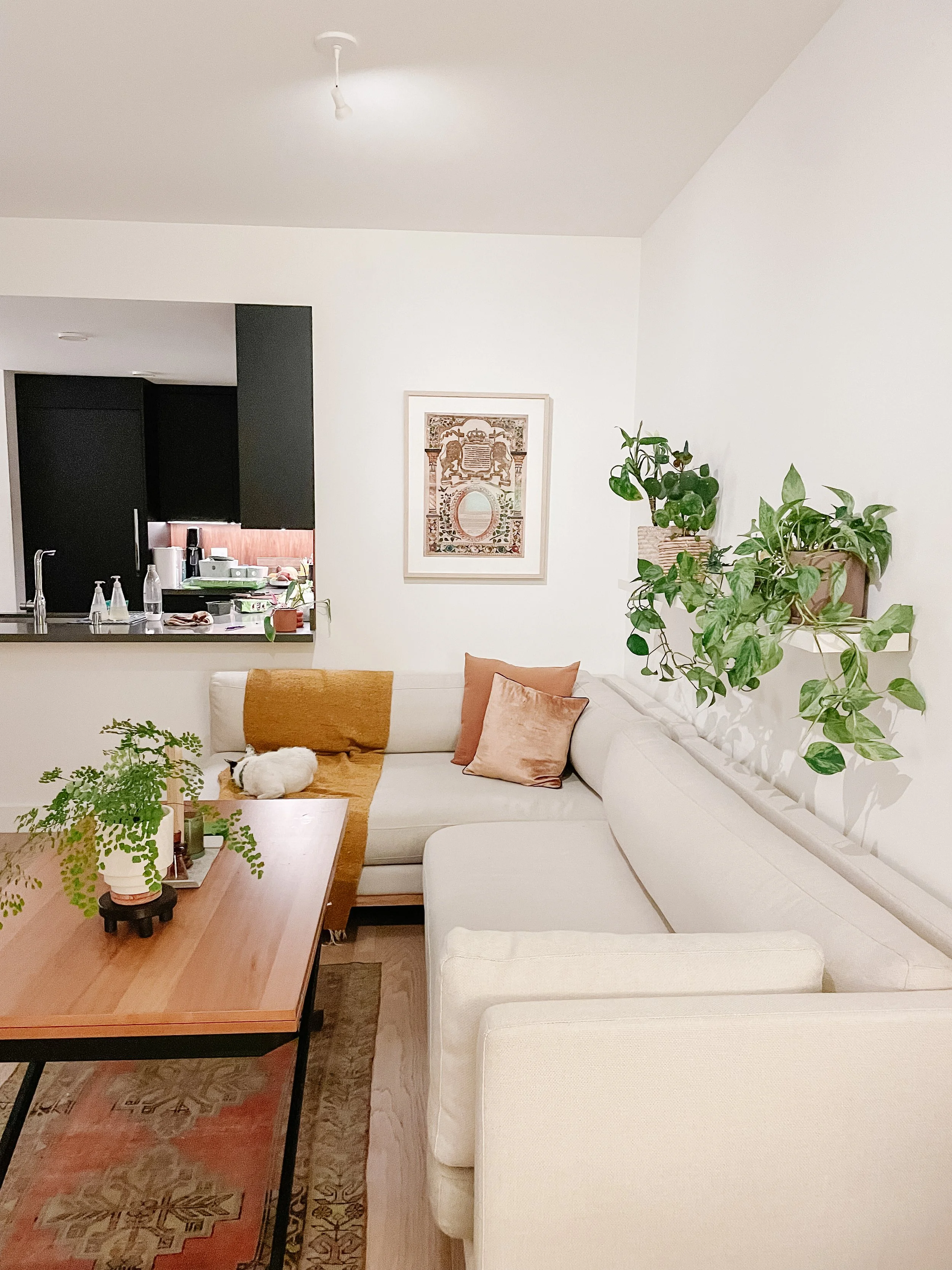When it was time to turn a beloved, catalogue clean Modern Condo into a home for a family, giving up the perfection of every vignette on every surface was a big struggle. Over time, we learned to welcome in more color and chaos, rearranged the furniture to create more open space to play, and integrated the baby’s books as part of the decor to welcome him into the home.